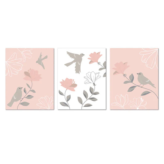 Petals Pink/Gray/White Floral/Birds 11 by 14 Unframed Wall Art 3pc