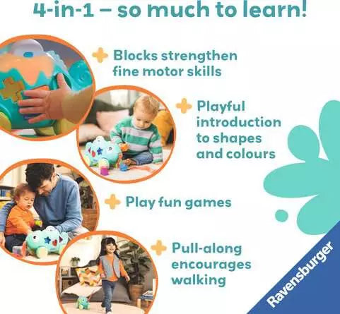 The Play+ collection from Ravensburger encompasses a wide range of toys and books for babies and toddlers aged 0 to 36 months. With playful discovery at its heart, the collection has been designed keeping children and parents in mind - offering captivating fun and developmental benefits with practical touches for ease of use and added play value. Whether it's time for a story, teething time, an anytime playtime, or you're simply on-the-go together, Play+ toys and books are designed to encourage your child's natural curiosity and foster early milestones. Developed alongside experts and incorporating over 100 years of Ravensburger expertise in making high quality toys. It all starts with play!