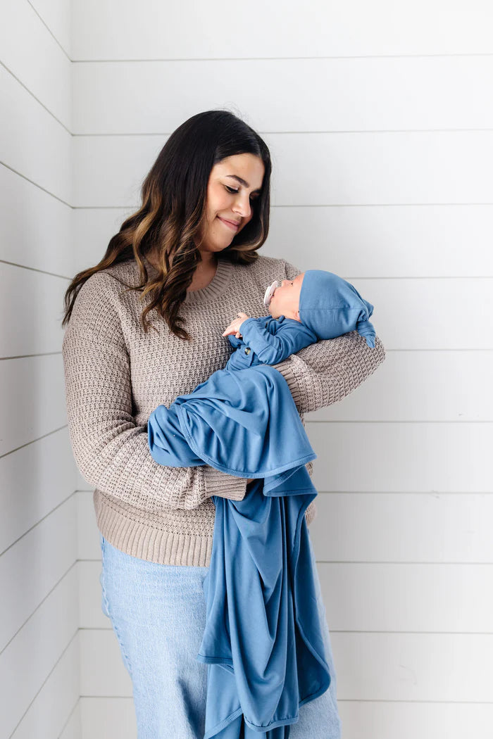The easiest tie-bottom outfit for day or night. Made for hassle free diaper changes and gentle dressing, I designed this with a button-down front and tie bottom for simple closure (no more snaps at 2am!). Fold over wrist cuffs are the most thoughtful finishing touch.