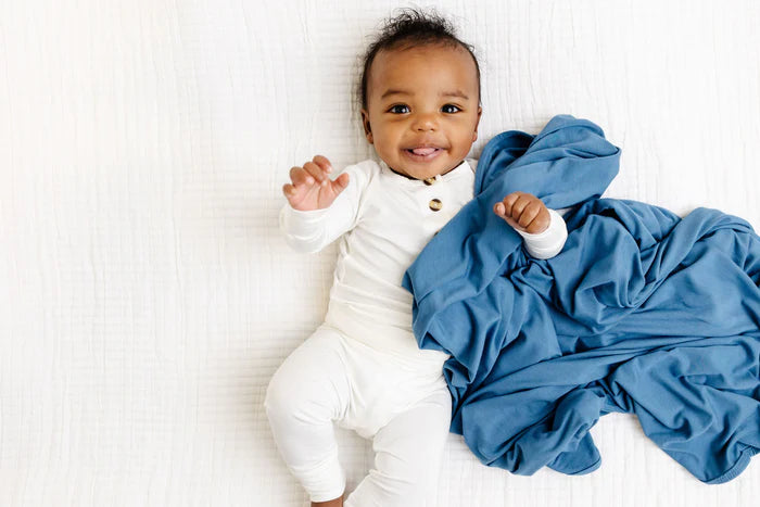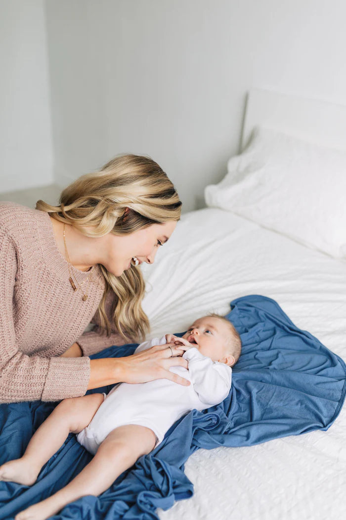 Knit Swaddle Blanket: the only blanket you’ll ever use for swaddling, nursing and comforting. Stretchy, breathable, generously sized, and always silky soft. 48x48 in.