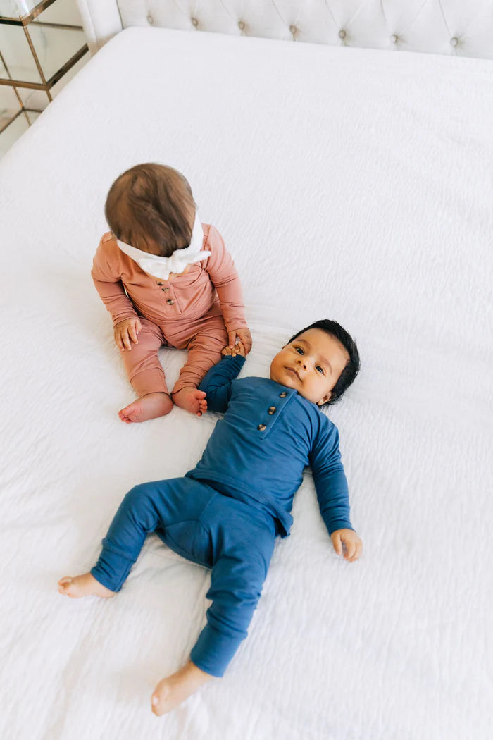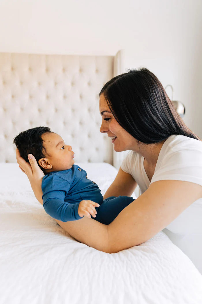 Good things come in pairs and our tops + bottoms are no exception. They’re made from our signature silky-soft material for a stretchy, comfy fit with functional buttons and fold-over waistband for room to grow (or to wear high-waisted). Say goodbye to socks that slip right off with built-in footies (on the newborn size only) to keep those tiny toes warm without the fuss. Unbelievably sweet mixing & matching approved.