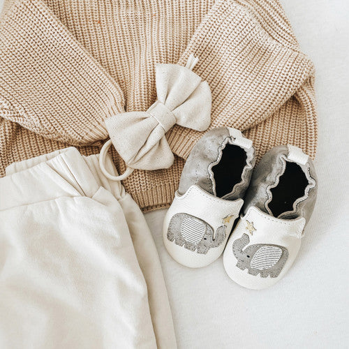 The Robeez Elephant Stars Soft Soles have such adorable leather appliqués that make it the perfect addition to your baby’s wardrobe. The soft, suede material on the sole provides support when gripping the floor and a gentle touch on your little one's skin.