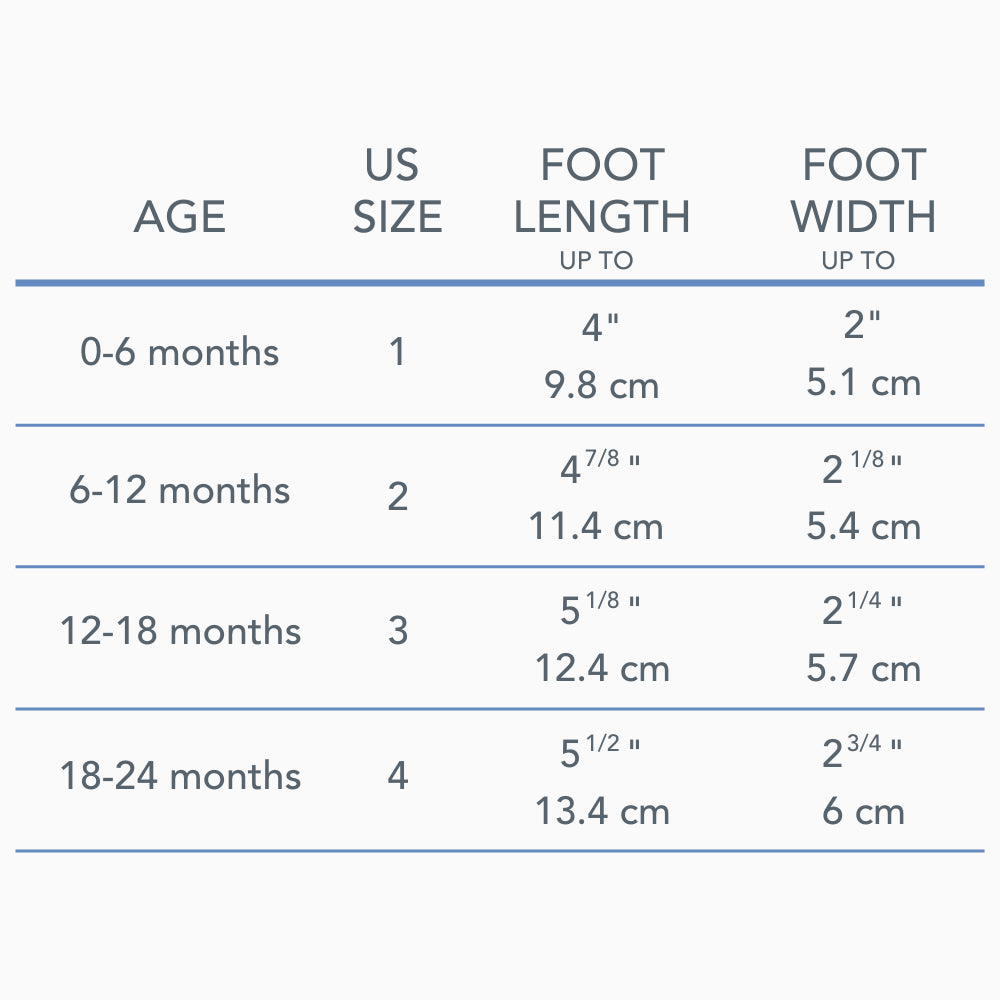 - Sizing is roomy to fit different feet and provides extra space for feet to grow—perfect for infants, babies, pre-walkers & toddlers.