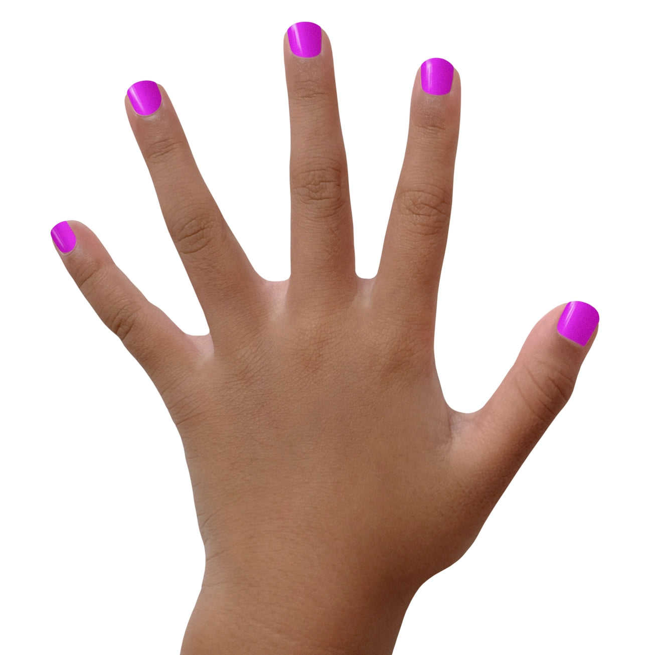 Shimmery bright purple water-based nail polish that dries hard & does not peel off.