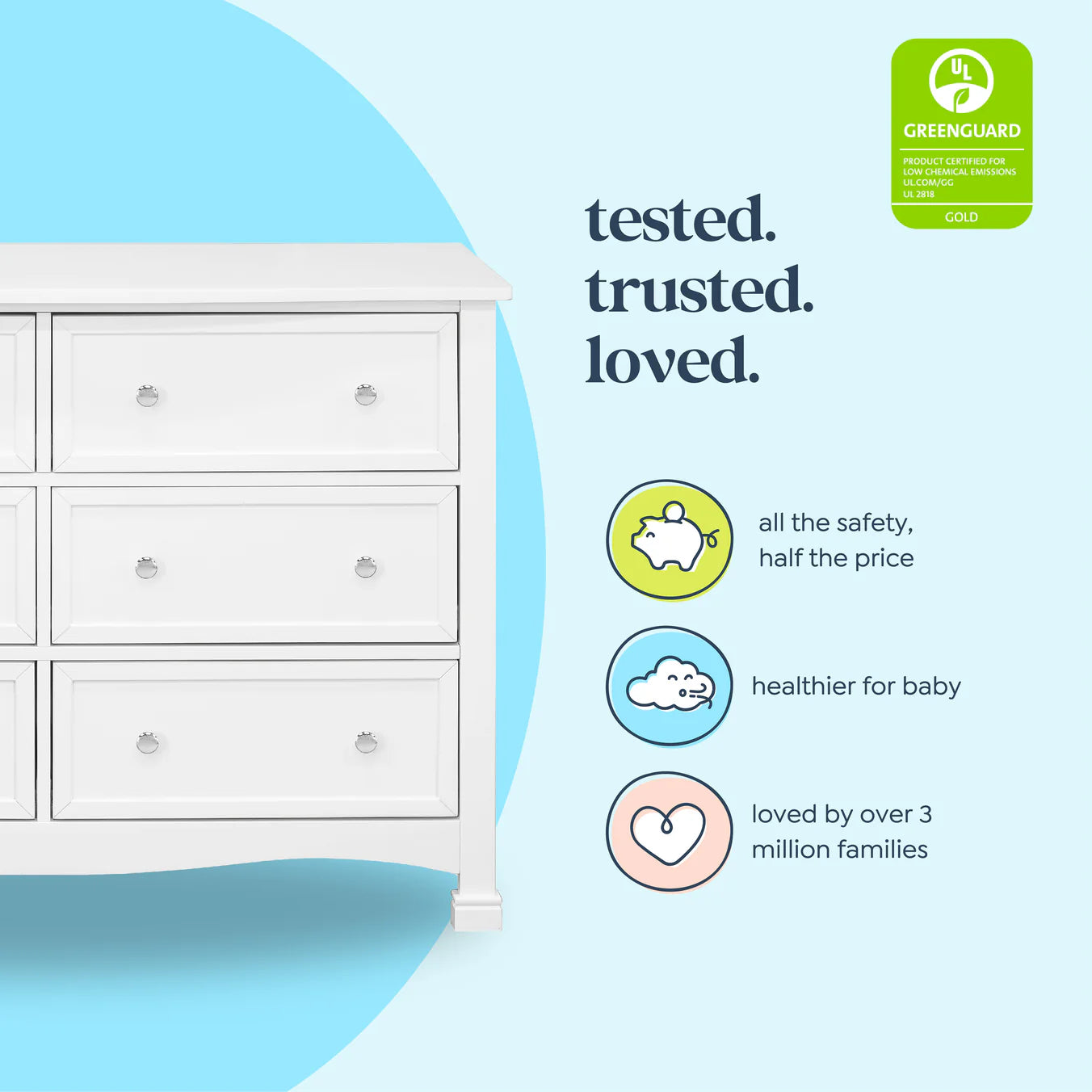 - DURABILITY: 6 spacious drawers that can hold all the adorable baby clothes, blanket, and more. We've built this dresser with features like additional corner blocks to make it sturdier and long-lasting