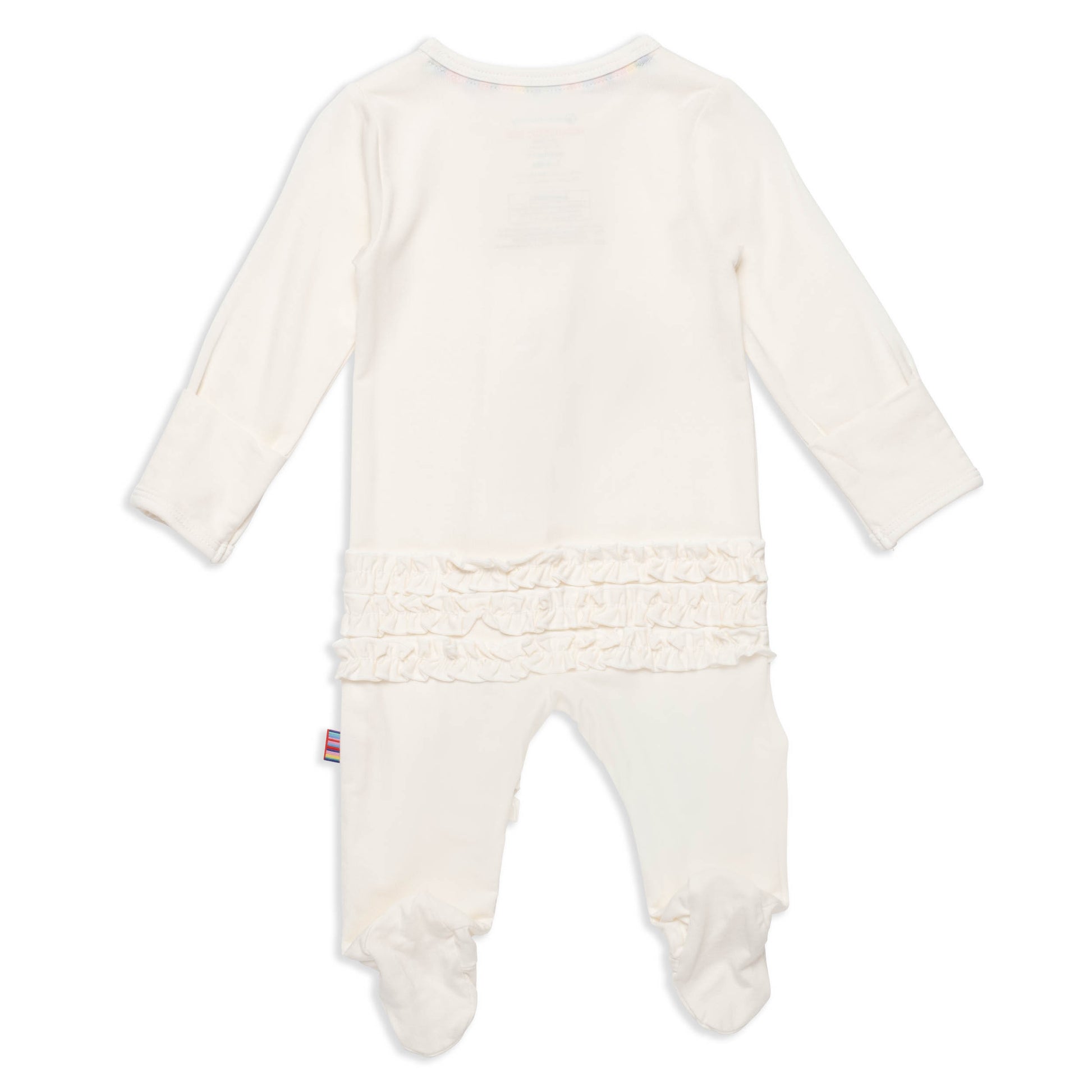 No more squeezing baby into annoying tight-fit footies—our patent-pending RightFit™ fabric gives baby room to wiggle with a loose-fitting footie that's naturally flame retardant without the use of toxic chemicals. Soft, magnetic + comfortable—get ready for this parent game changer. goodbye tight fit, hello RightFit™.