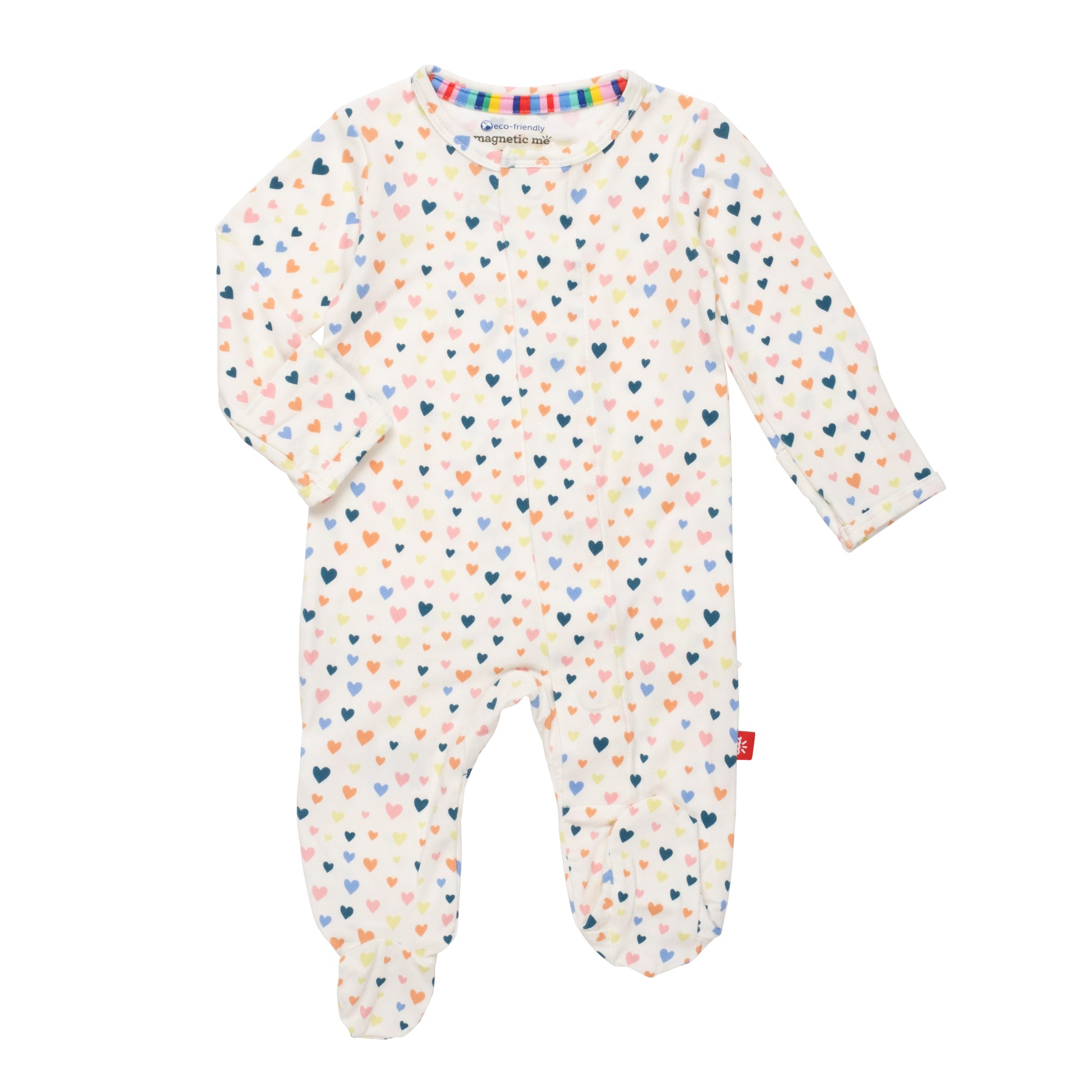 magnetic closures: magnets line the seam from the neck to upper thigh for sizes up to 0-3m & from neck to crotch for sizes 3-6m and up.
