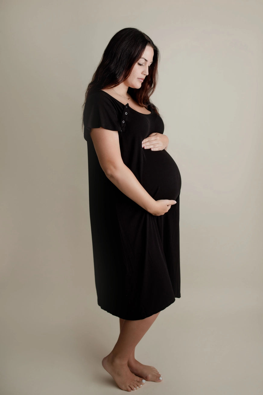 Maternity Mommy Labor and Delivery/ Nursing Gown - Black