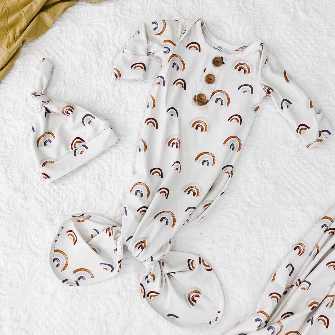 Newborn Baby Knot Gown & Hat | Cannon's Earthy Rainbow
