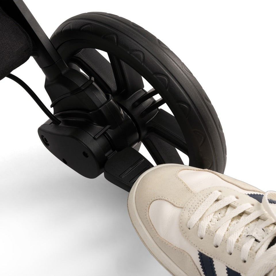 - Front swivel wheels with swivel locks for more comfortable strolls on uneven terrain