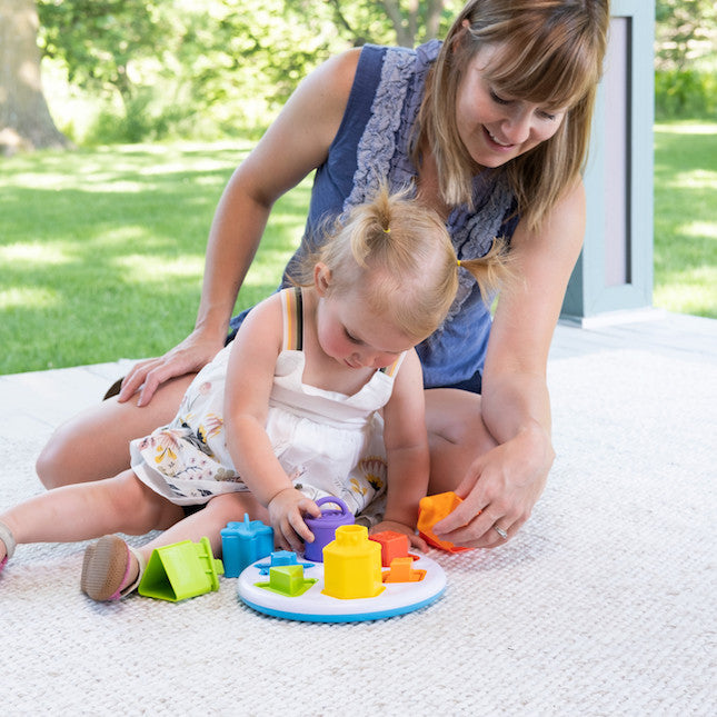 Fit the large hollow shapes into their matching slots. Fit the squishy silicone plugs into their matching hollow shapes. Or, fit the plugs right over the shapes sticking out of the base. Each shape in the base has a unique texture design and each plug has a handle to match. It's all the fun of lids and containers but with a unique twist of tactile fascination! Get your little one plugged into learning early with their new best friend Plugzy.