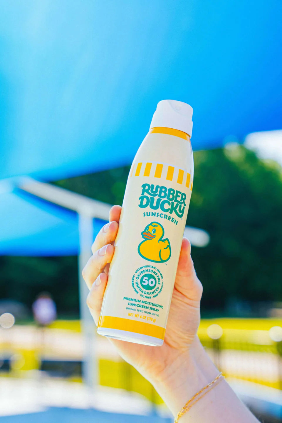 Rubber Ducky's new branding is effective March 2024. Enjoy this 6 oz. spray sunscreen that's great for the beach, pool or everyday sports.