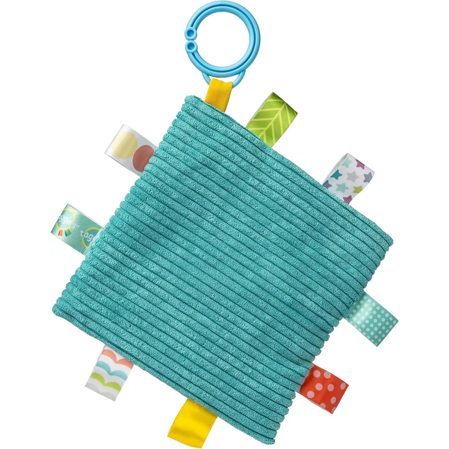 GREAT FOR LITTLE HANDS: Adorned with interactive and soothing satin loop tags for baby's sensory delight; scrunch and squeeze to hear the crinkle paper and squeaker inside the fabric