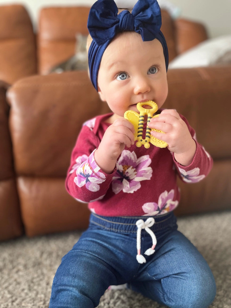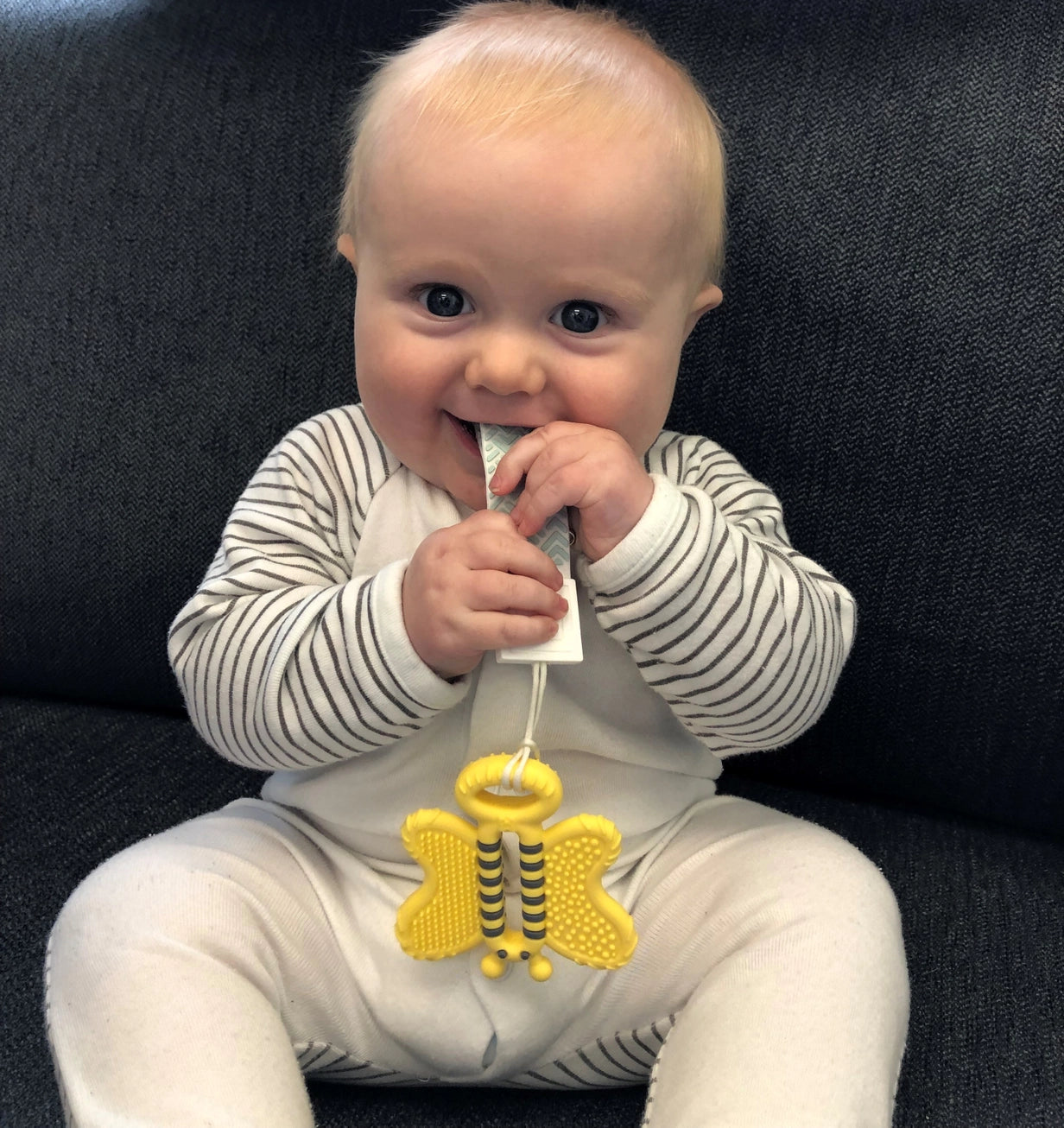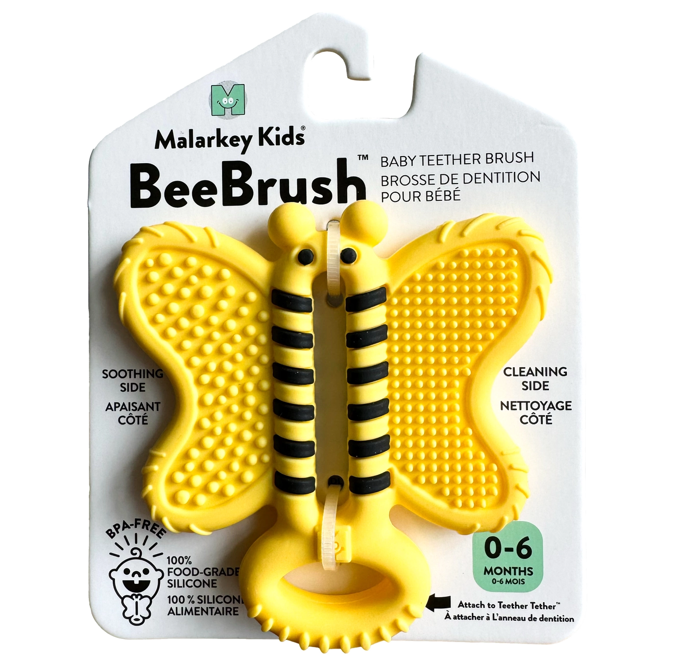 The Malarkey Kids Toothbrush Teether is a versatile and innovative teething solution. Designed with soft, flexible silicone bristles, this teether resembles a toothbrush, offering relief for sore gums while introducing oral hygiene habits. The unique design assists in soothing discomfort during the teething phase, and the textured surface helps stimulate and massage a baby's gums. Free from harmful chemicals and easy to clean, this teether promotes early dental care habits while providing safe and soothing relief for infants' teething needs. Its compact size and durable design make it a convenient, portable tool for parents seeking a practical and hygienic solution for their baby's teething discomfort. One size. 3-7 months.