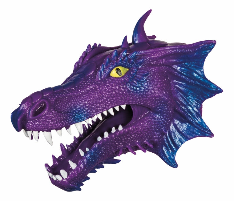 Everyone loves puppets. This two-tone colored dragon hand puppet has bumpy, scale-like rubber skin, webbed cheek fans, protruding spikes, flared nostrils, and flashing white teeth while looking terrifyingly real. A fun item to keep in stock for kids who like monsters and fairy tales, these dragon puppets are made of stretchy, flexible, nontoxic rubber for hand-controlled movement. Fun for kids 3+, these dragon puppets make great party favors, kids’ classroom toys, sing-along accompaniments, or play-anywhere fidget toys. Comes in a colorful 12.6 x 8.6-inch display case with a flame-shooting purple dragon illustration.
